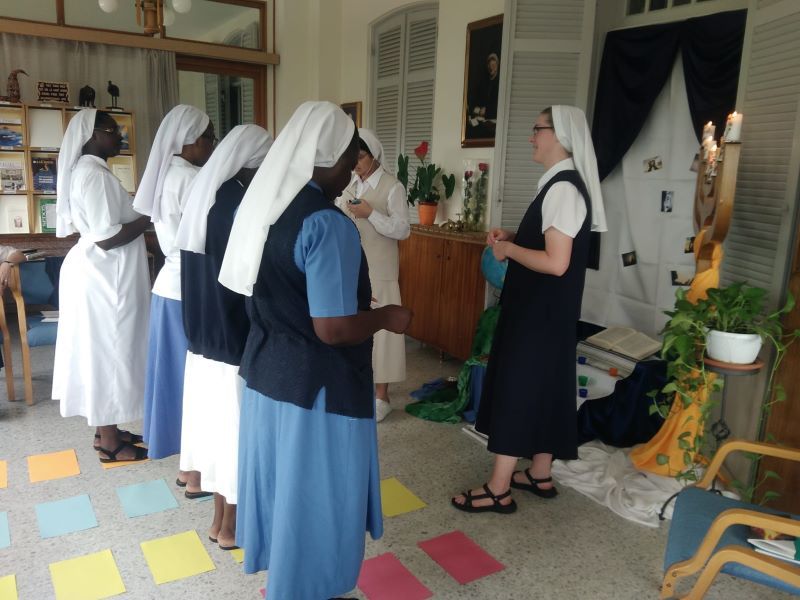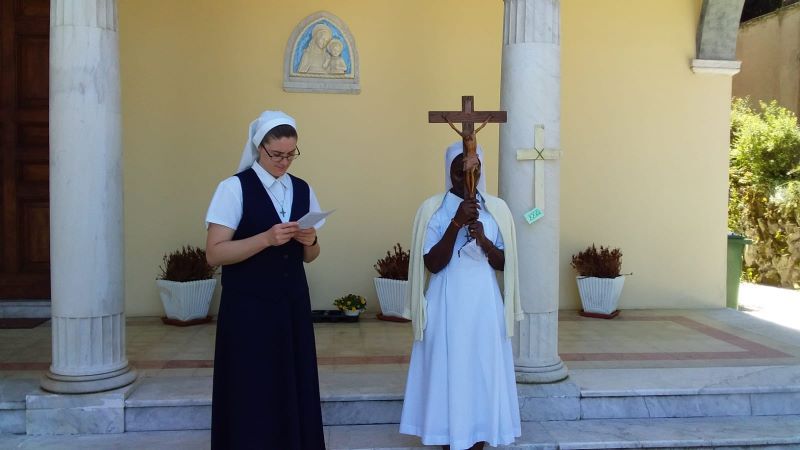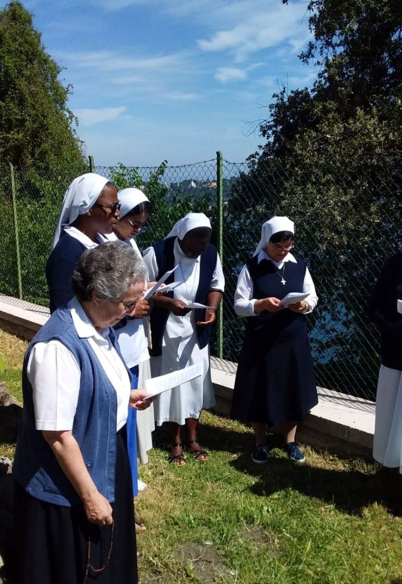 Pour vivre ces 29 stations, nous sommes parties du Sacré Cœur et, en faisant le tour du jardin, nous nous sommes rendues à la maison St Joseph et après en direction de la Maison générale. À chaque station une simple croix de bois nous accueillait et nous invitait à la prière. En parcourant ce chemin, nous avons fait mémoire de tous les mystères de la vie de Jésus : c’était un chemin de croix et un chemin de gloire, vécu avec une grande ferveur.