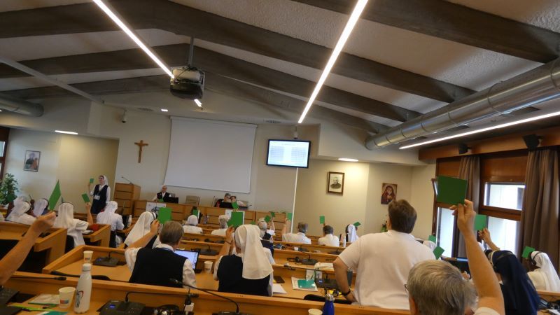 Le partage des réflexions s’est poursuivi dans la salle du chapitre. Toutes celles qui ont souhaité partager ont été écoutées. Lorsque les déléguées ont été prêtes, les propositions ont été votées. À la fin de la journée, nous avons écouté attentivement les souhaits soumis au Chapitre général et à l’Administration générale.