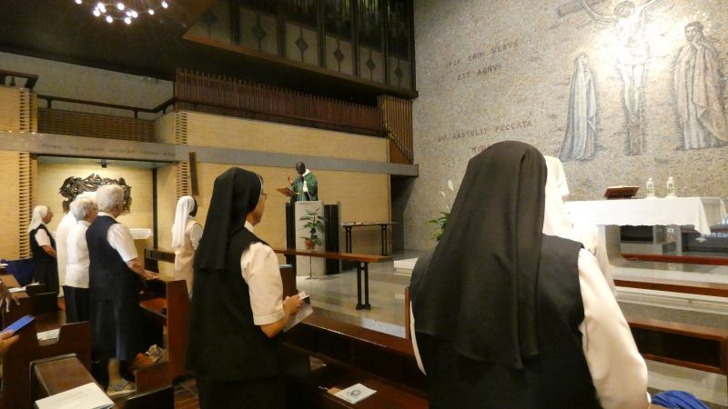 Then the whole delegation went to the nearby Congregation of the Sisters of Maria Bambina chapel for the Eucharistic celebration presided by Abbé Eugène. After the mass, Mo. Ma. Dos Anjos shared about what was shared by the Pope with her which is summed up on the living of the virtues of humility and courage.