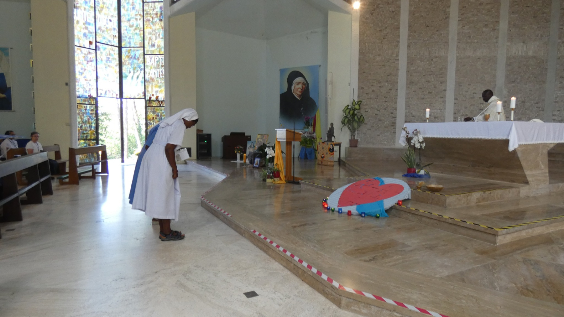 As suas virtudes merecem ser celebradas, pois foram elas que fizeram dela a Santa da Igreja universal! Cada grupo de virtudes devia realizar um vídeo com uma encenação ou uma mímica que retratasse as suas virtudes de compaixão, mortificação, etc. Na celebração da Santa Eucaristia, oferecemos os símbolos que criámos durante as nossas peregrinações às Virgens de Maria Rivier! Havia também um grande puzzle de peças de coração que juntámos para criar o coração de Jesus cheio de amor que nos impele também a amar! Os vídeos foram apresentados durante a festa da noite!