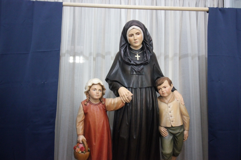 Na casa generalícia, às 17h30 vivemos uma bela celebração, marcada pela bênção da nova estátua da nossa Santa Madre Rivier. Uma bela estátua de madeira que representa Maria Rivier no seu tamanho real, acompanhada por duas crianças. Provavelmente uma das estátuas mais realistas que tivemos até agora! Esta foi abençoada durante a celebração das vésperas. Um ” uau!! ” colectivo, representativo da admiração pela obra-prima, que manifestou a emoção e a surpresa das irmãs.  Como expressão de alegria, as irmãs cantaram e dançaram, diante da estátua.