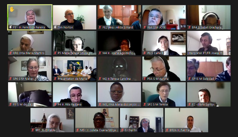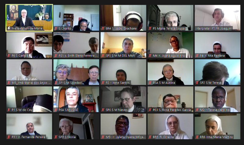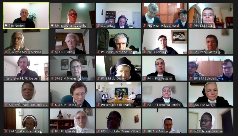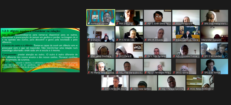 La animación de hoy está a cargo de la Hna. Hortensia. La sesión comienza con la oración preparada por las Hermanas de la Provincia Portuguesa, ¡MARANATHA!