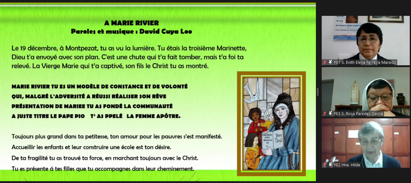 Sor Fernanda, presentó el libro recientemente publicado por la Provincia Portuguesa escrito por el Padre Dario Pedroso, sj. El libro se publicó para conmemorar los 225 años de nuestra fundación. El P. Darío descubrió el amor de María Rivier y se inspiró para escribir una reflexión en forma de libro. La portada y otras ilustraciones incluidas en el libro fueron realizadas por Sor Elodie, pm.
