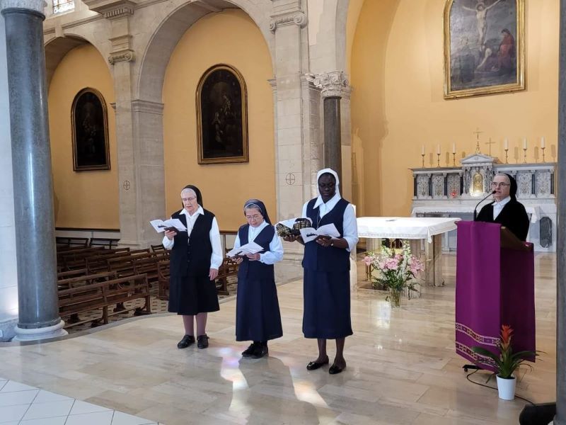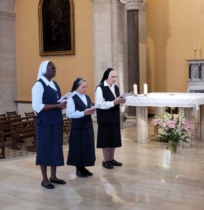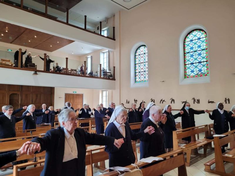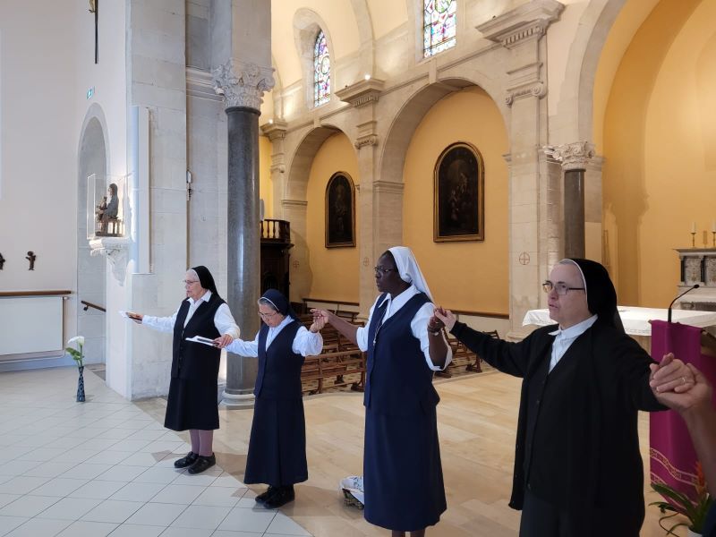 En récitant la prière du Seigneur, toutes les sœurs se tenaient la main en signe d’unité pour cette mission spéciale. C’était un spectacle et un geste très touchants.