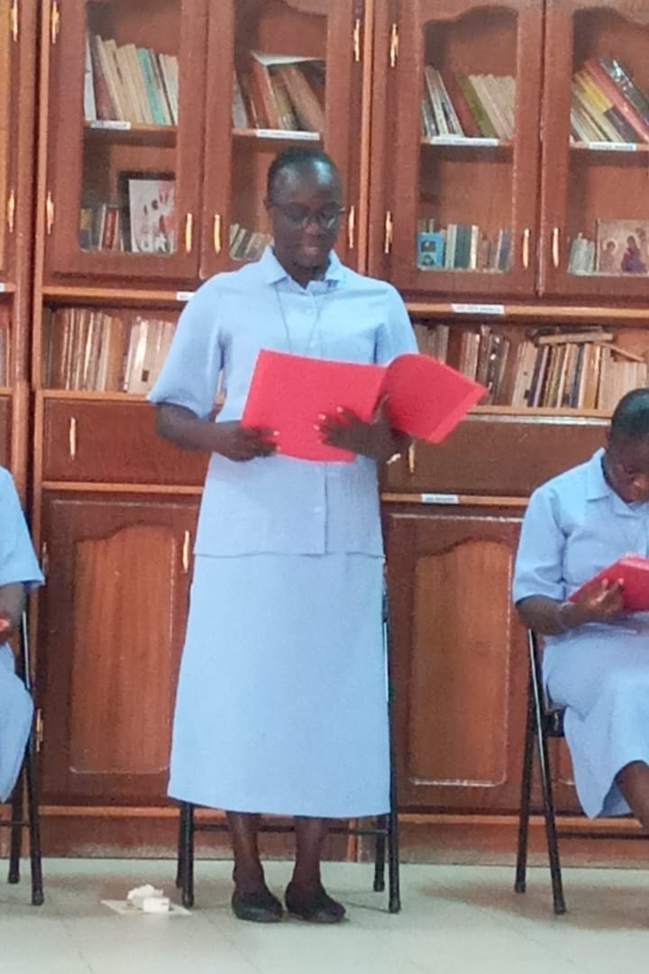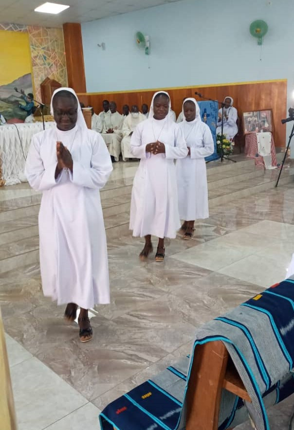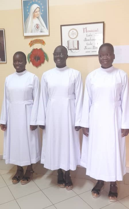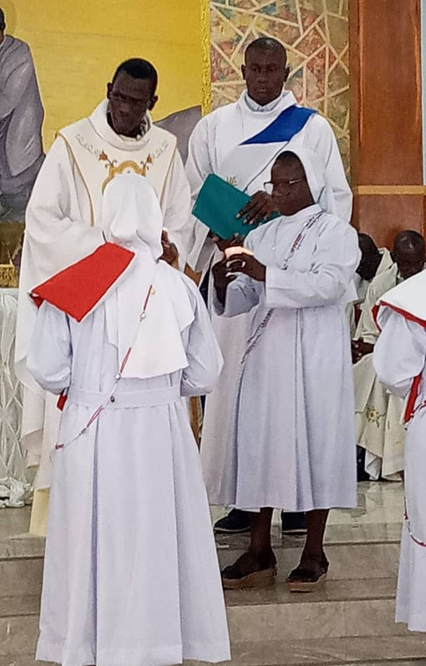 En effet, le samedi 08, notre Province a accueilli trois nouveaux membres. Jacqueline DIOUf, Marthe SYLVA et Nicole COMPAORE ont prononcé leurs premiers vœux dans notre famille religieuse. La veille, comme il est de coutume, la communauté s’est réunie pour l’accueil de nos jeunes sœurs et de S. Lise KINOUANI qui devait faire ses vœux perpétuels le 09.