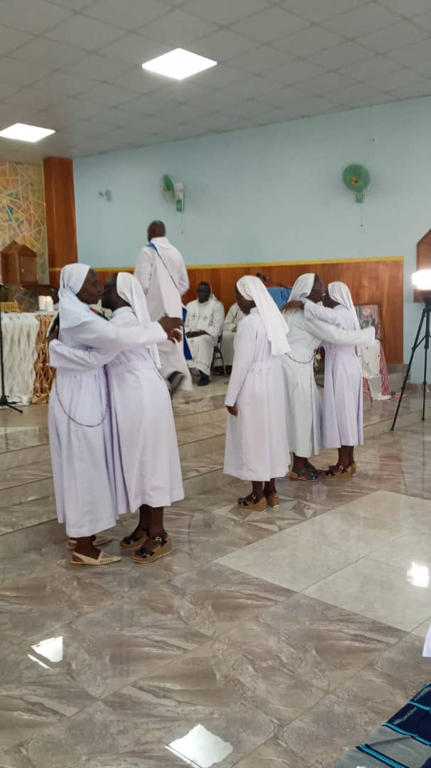 Après la célébration, un verre de l’amitié a été offert à tous ceux qui ont participé à la cérémonie. Dans l’après-midi, les nouvelles professes ont rejoint leur famille respective pour une petite fête offerte en leur honneur. Qu’il leur soit donné de garder en mémoire la joie de ce 08 octobre 2022, qui marque à jamais le choix qu’elles ont fait de Jésus Christ.