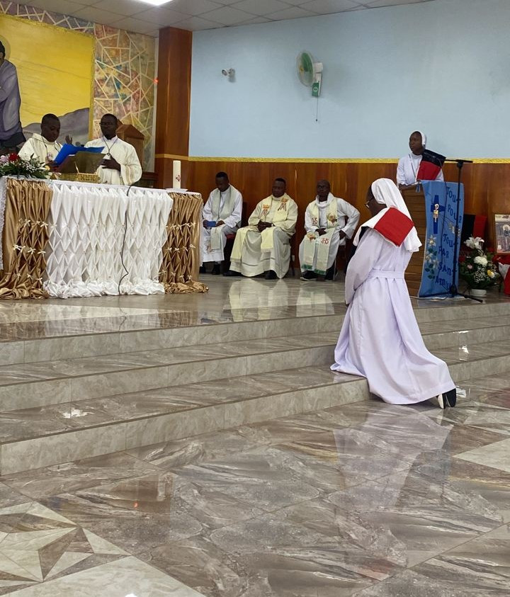 Le lendemain 9 octobre, un double événement a de nouveau réuni la province, toujours dans la grande chapelle du Mont Thabor. S. Lise KINOUANI a prononcé un Oui définitif dans notre famille religieuse. C’est avec une grande joie que notre sœur, entourée de ses parents venus du Congo, a vécu cette journée. La chorale africaine de la paroisse Saint Joseph de Médina a accompagné la célébration eucharistique de beaux chants aux mélodies congolaises.