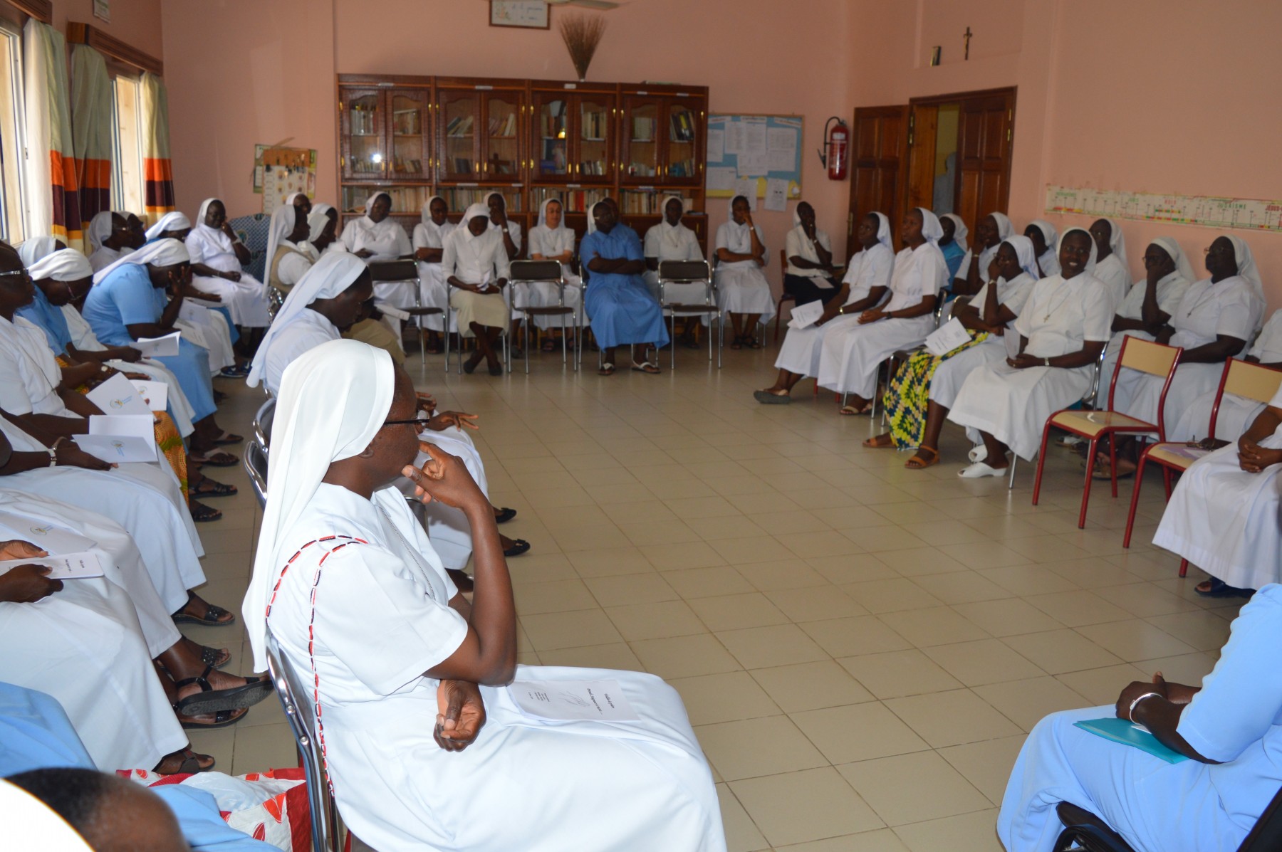 La communauté à son tour, leur a recommandé de garder l’esprit de prière et la joie qui nous caractérisent et de préserver jalousement ces traits de caractères qui nous sont propres. Après cela, nous sommes allées en procession vers la chapelle pour l’office animée par la communauté de Yoff. Au cours de la célébration, elles ont rappelé le sens du voile qui sera pour nos sœurs le premier signe de leur consécration, le sens de la croix qu’elles porteront et qu’elles devront chérir comme notre mère Rivier, la Règle de Vie des sœurs de la Présentation de Marie qui leur offre un chemin particulier de sainteté, le sens du pagne bicolore qui dit leur pureté et de leur donation totale à Dieu.