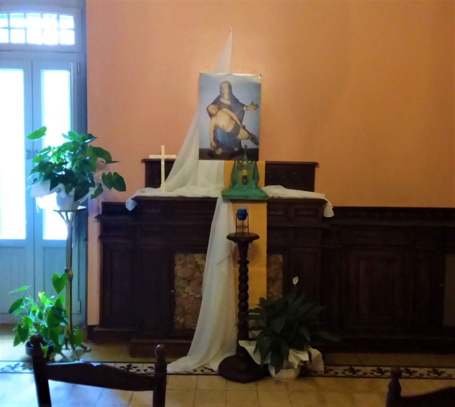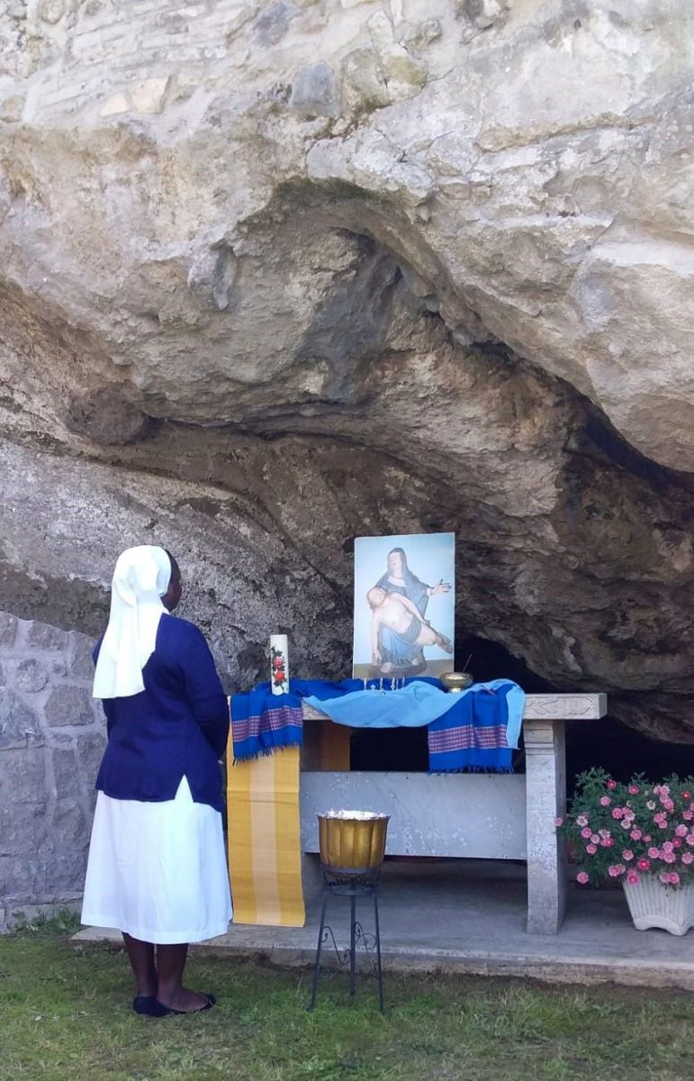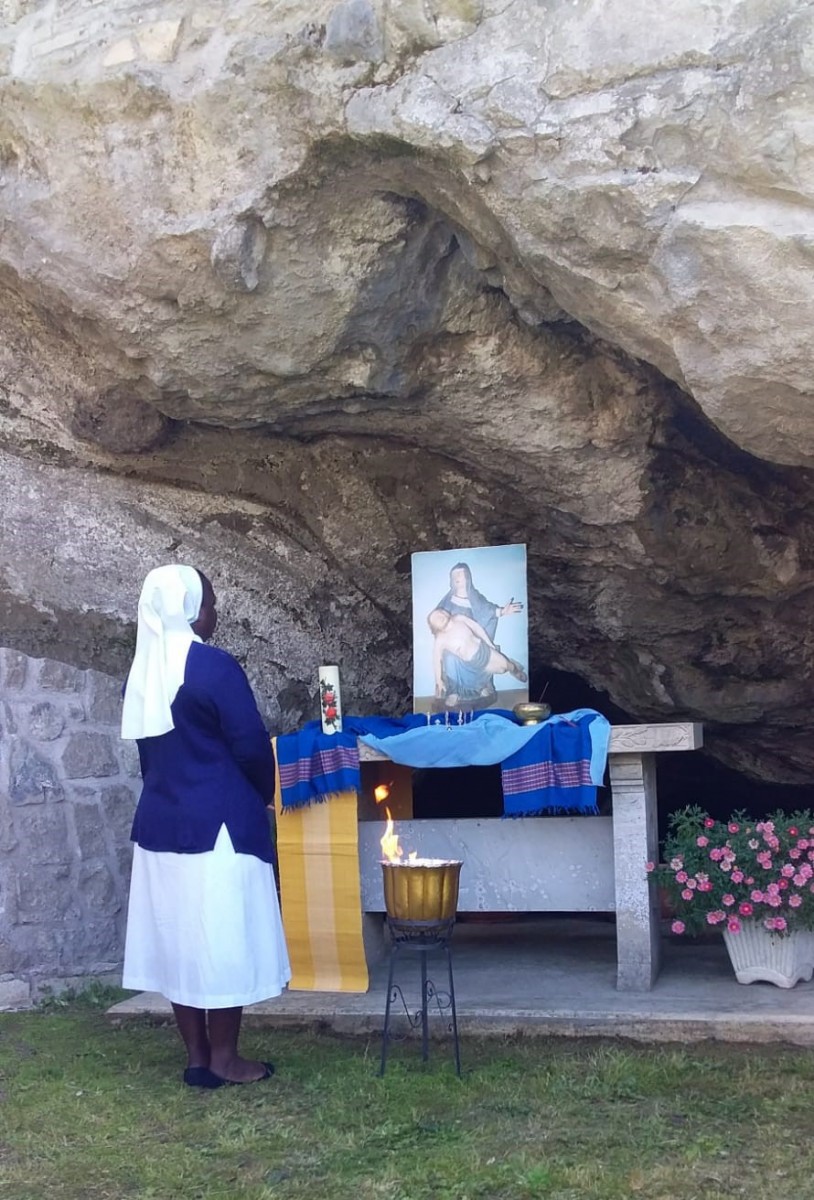 Cette semaine c’était à notre tour de demander la guérison et la grâce de nos origines. Des temps de silence devant l’image de la Pietà, des chapelets, des lettres écrites à la Vierge Marie, tout cela fut partie des diverses invitations à nous rendre présentes à ce mystère et à nous ouvrir aux grâces offertes par l’intercession de Marie pour nous et pour toute la Congrégation. Mère Maria dos Anjos, dans ses entretiens, nous a invitées à méditer sur notre identité et notre spiritualité mariale. A travers les écrits de nos Supérieures générales, depuis le début jusqu’à aujourd’hui, nous avons vu comment notre Congrégation a toujours mis sa confiance en la Vierge Marie pour tout. Nous avons aussi médité le rôle unique de Marie dans l’histoire universelle du salut et dans les Saintes Écritures.