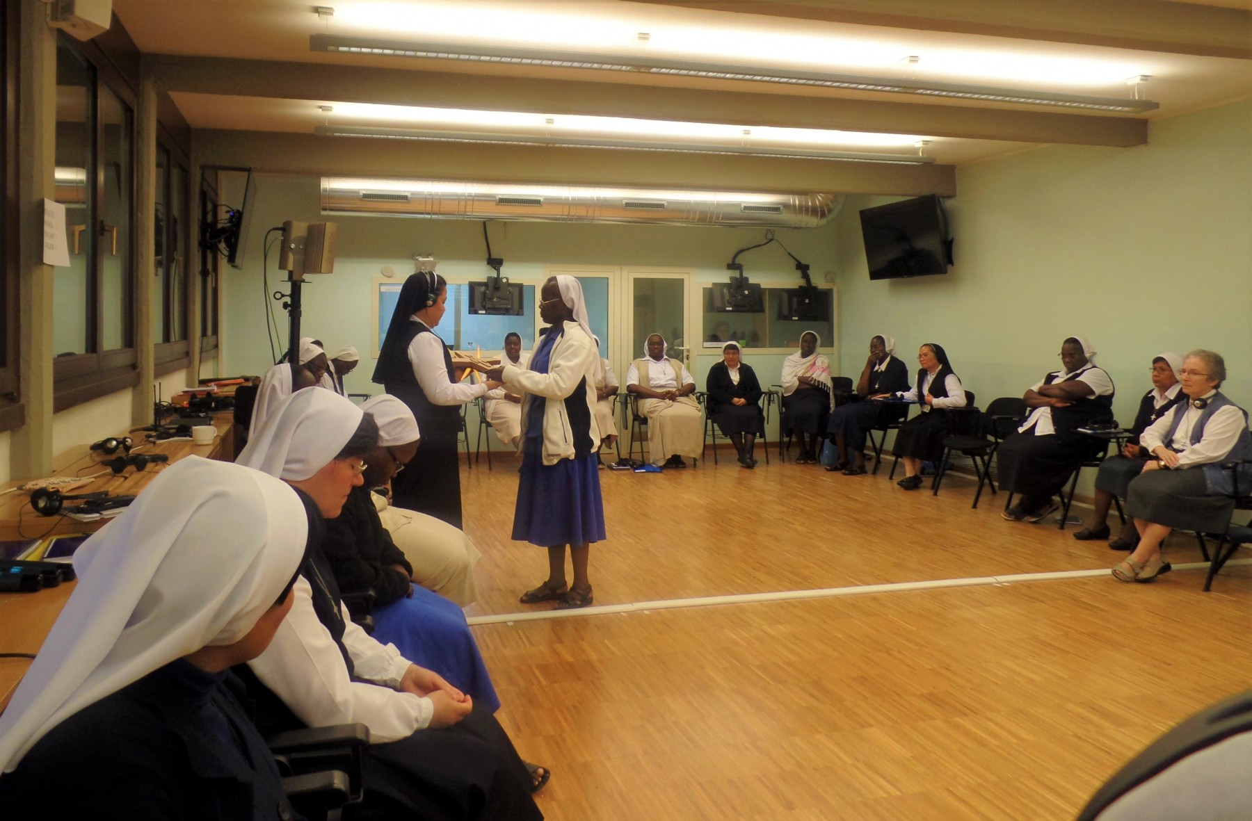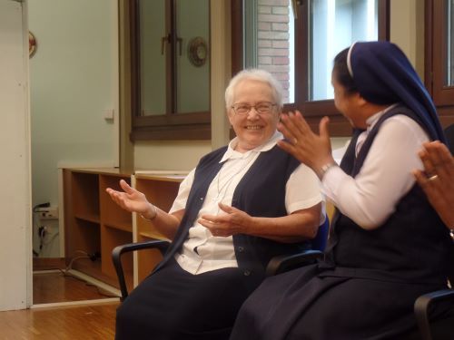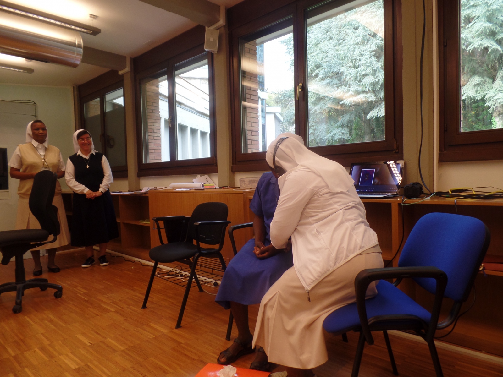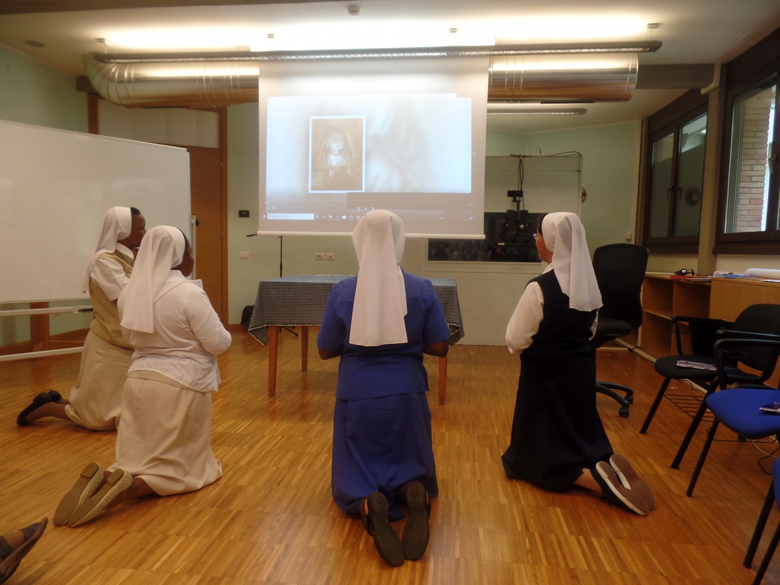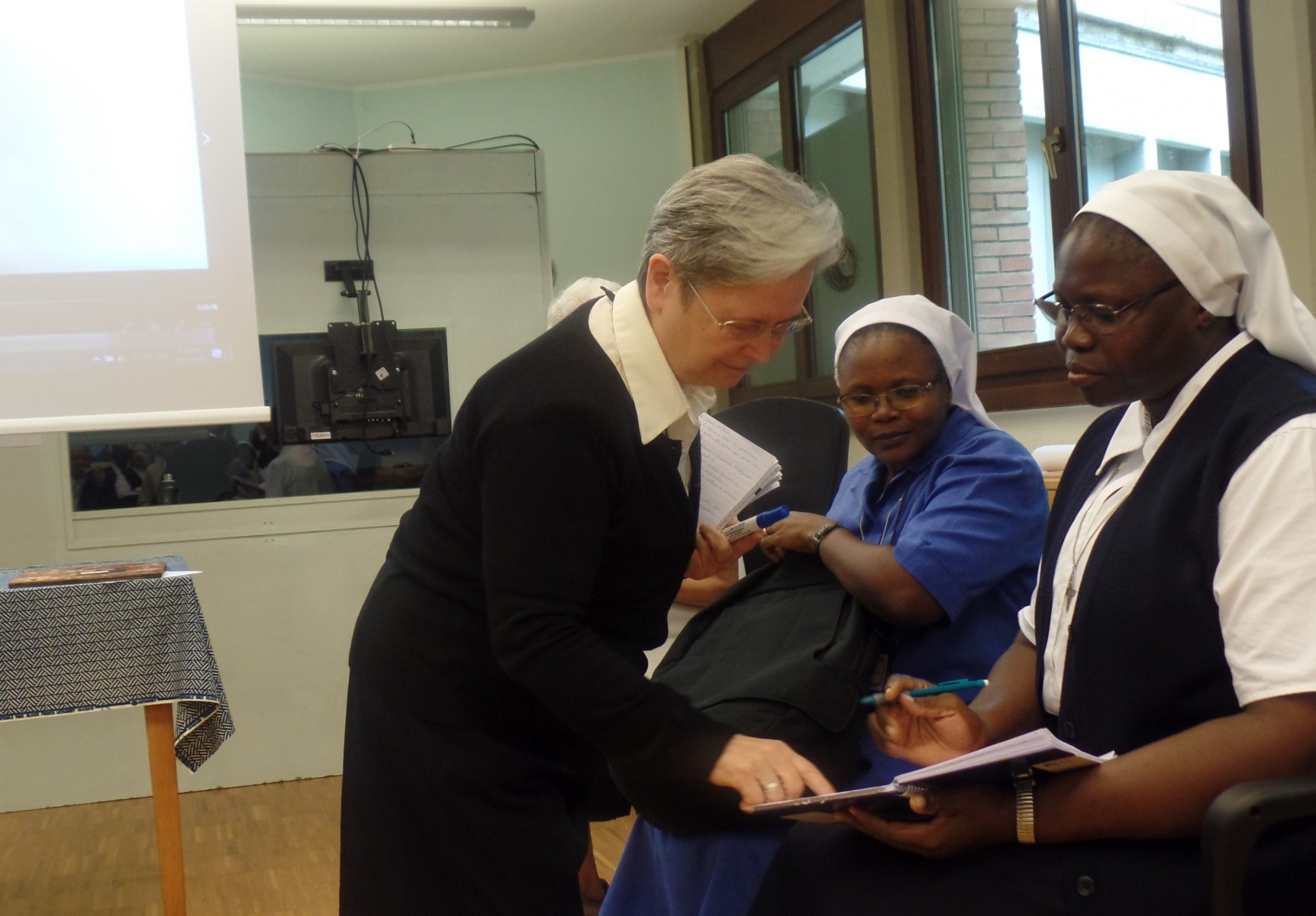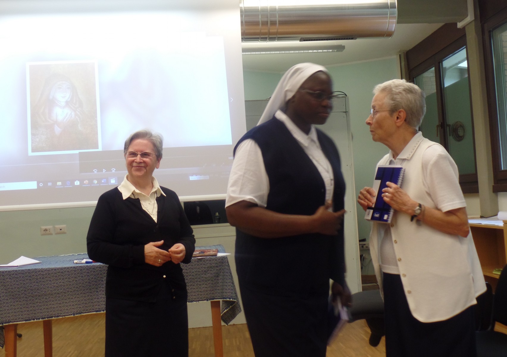 La Hna. Kelly Connors pm, miembro del Consejo General, nos presentó, de una manera muy interesante y humana, los consejos evangélicos de castidad, pobreza y obediencia según el Derecho Canónico en referencia a nuestra Regla de Vida. Nos explicó varias normas que tocan temas actuales y nos invitó a renovar nuestro deseo de luchar por la coherencia y la integridad en la vida diaria religiosa. Puesto que estos consejos son nuestro camino hacia la santidad, el propósito de nuestra vocación, ella también elaboró el significado de nuestra corresponsabilidad al vivir estos compromisos en comunidad. Entender verdaderamente por qué hacemos lo que hacemos nos ayudaría a vivir más profundamente la esencia de nuestros votos.