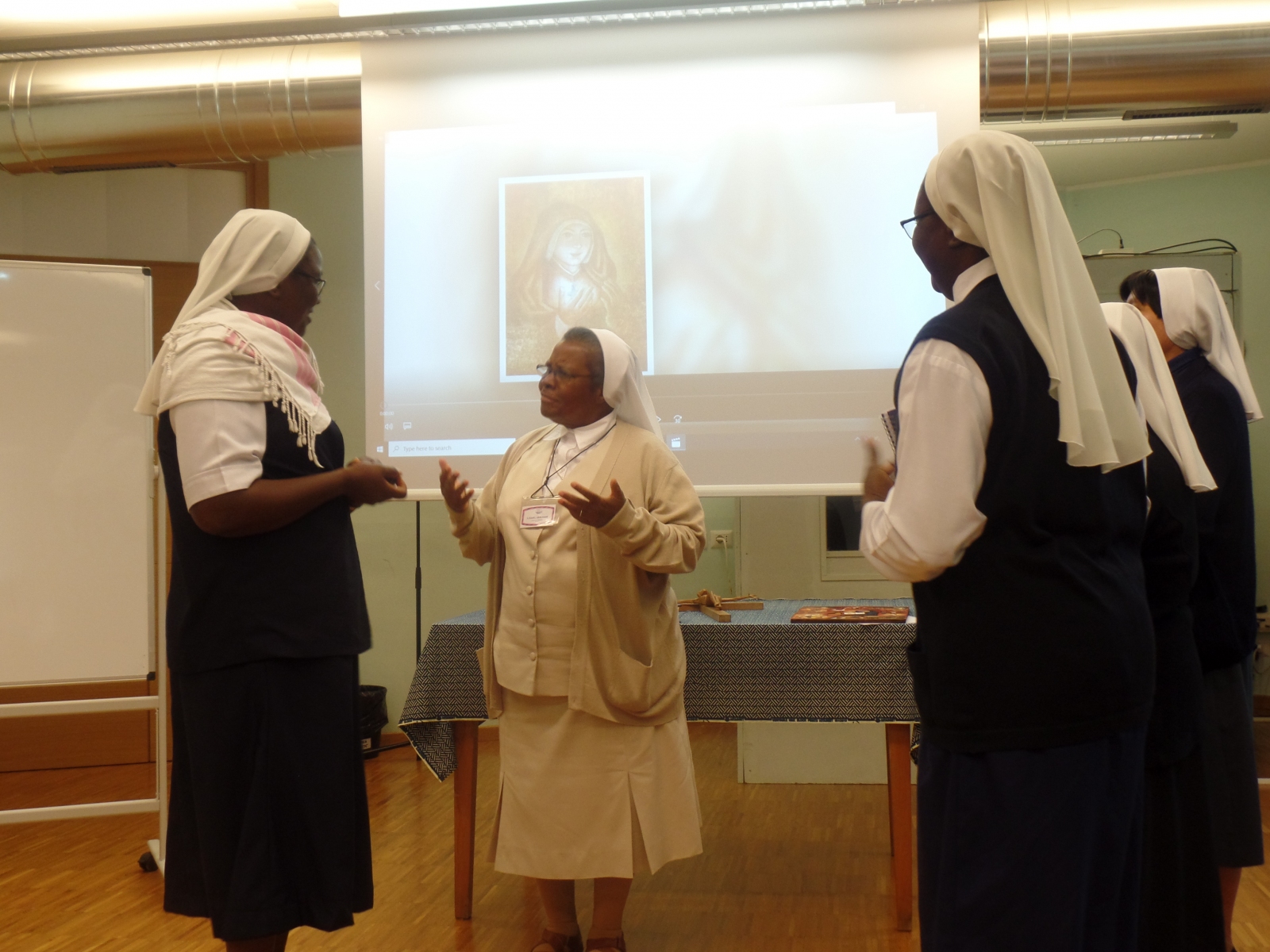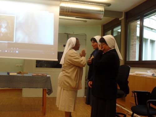 Nuestra propia Hermana Marie du Christ Gaucherand, nos ayudó a profundizar la herencia espiritual que hemos recibido de la Beata Marie Rivier que se formó en la Escuela Francesa de Espiritualidad. Destacó algunos aspectos de nuestro patrimonio espiritual tal como lo vivió y atesoró la propia Marie Rivier. Por nombrar algunos de ellos: el amor a Jesucristo, su Cruz, su Madre, el espíritu de celo, la oración y la adoración, su sentido de la gloria y la grandeza de Dios. Sus reflexiones nos ayudaron a profundizar en la espiritualidad de estos valores que, como formadoras, tenemos la responsabilidad de transmitir a las generaciones futuras.
