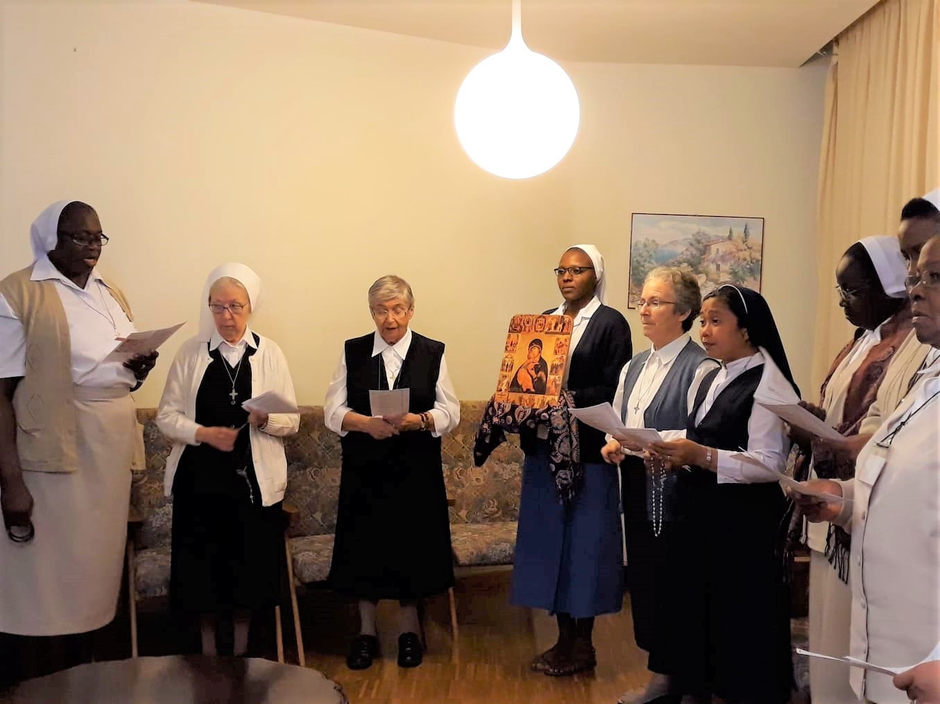 Nuestro día de reflexión sobre nuestra Espiritualidad y Carisma nos desafió a vivir en fidelidad el Carisma que Marie Rivier recibió de Dios. Este Carisma, este fuego, es la fuerza que nos impulsa a vivir nuestra identidad como PM, portadoras de la presencia de Jesucristo en nuestro mundo de hoy. Terminamos este día, el último día de octubre, con una procesión mariana especial y el rezo del rosario.