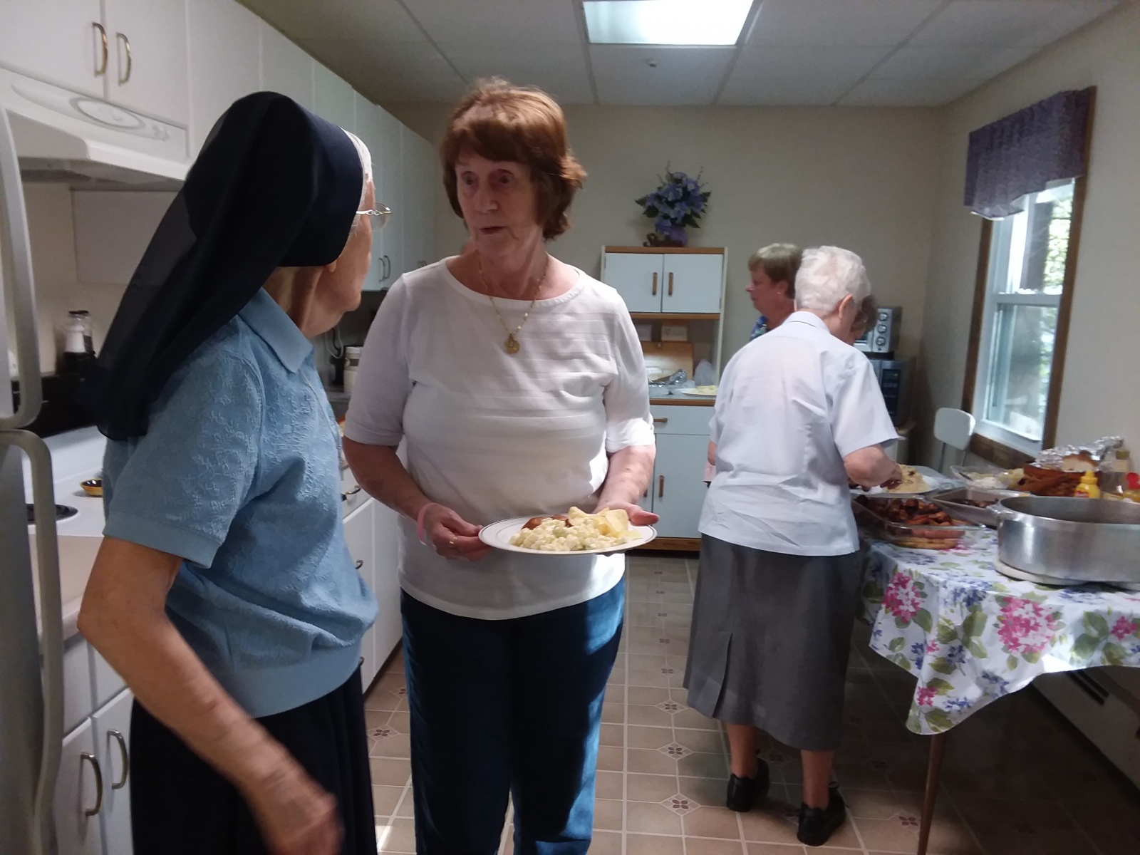 On June 11th, 6 p.m. our Marie Rivier Associates (MRA) met with the Sisters from Notre Dame Community in Methuen and enjoyed a Cook-out-Eat-in. This activity is hosted yearly in recognition of the dedication of the MRA who periodically entertain our Senior Sisters during the year. Interesting conversation and lively laughter echoed through the large community room where the evening’s activity took place, and where a buffet of tasty foods prepared by Sister Lucy was enjoyed by everyone.